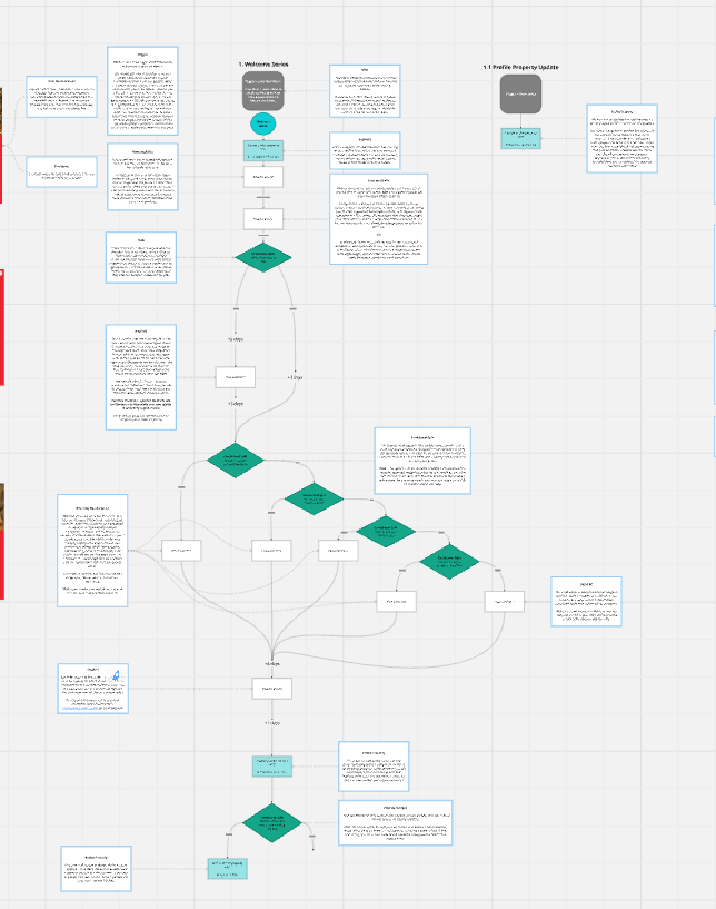 I made a Miro board that details how to set up your 12 key email automations. This document highlights the exact structures, time delays and content for all the emails within the following flows: